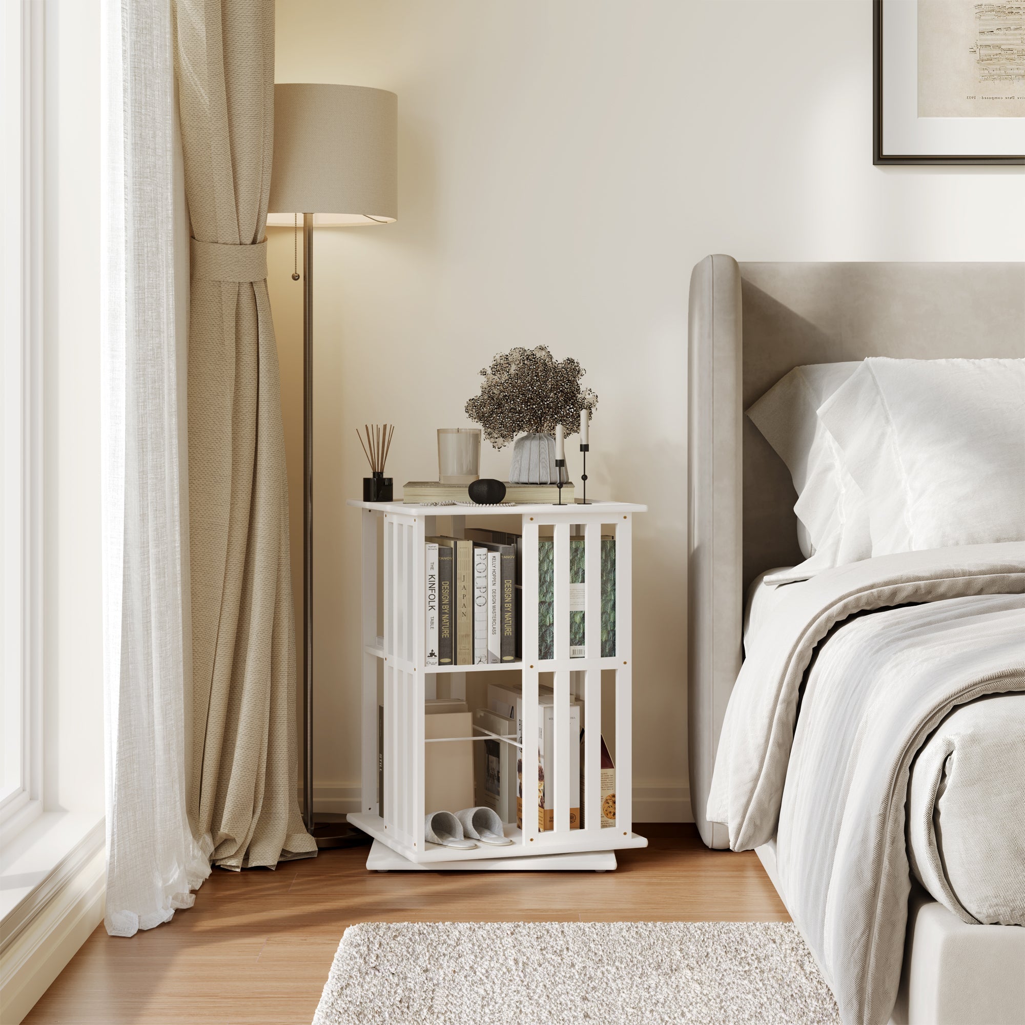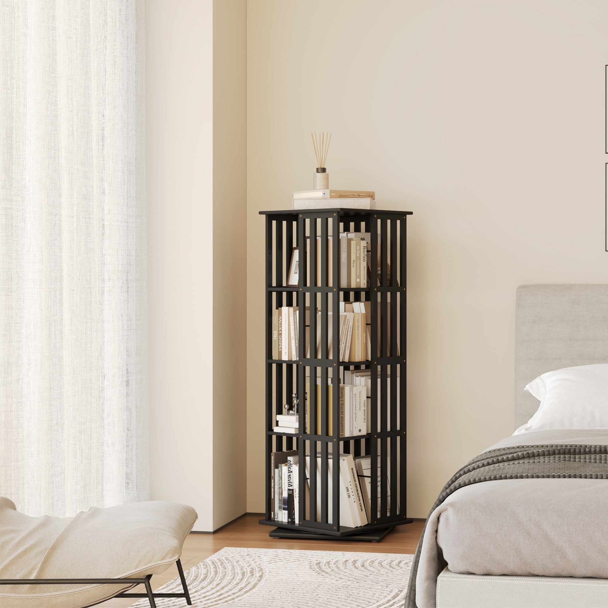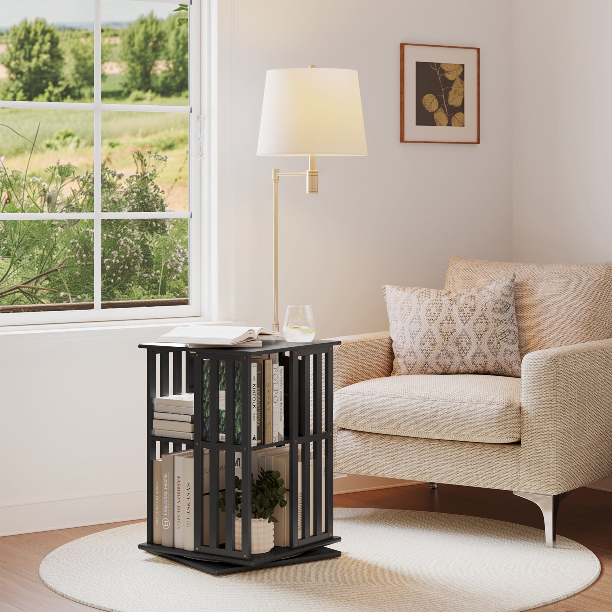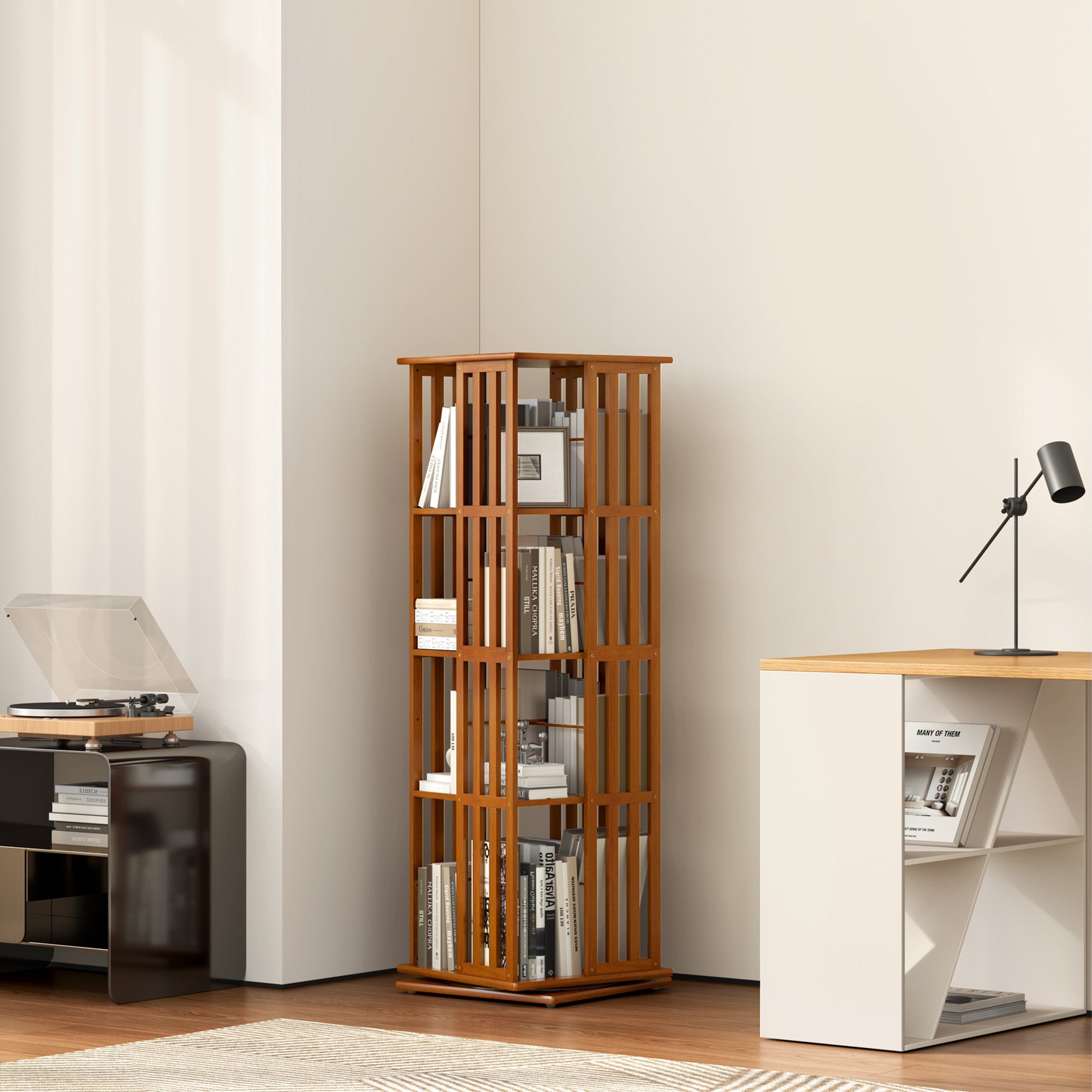 Yowosの回転式本棚は、縦格子の中空デザインを採用し、本、マンガ、CD、DVDなどを収納できるスペースを提供します。360度回転するデザインにより、従来の据え置き型本棚に比べて、どの方向からでも簡単に本を取り出せます。丸型の回転式本棚よりも角や縁を有効活用しているため、よりコンパクトに本を並べることができます。竹材を使用し、クラシックなウォールナット仕上げで、ミッドセンチュリースタイルの本棚です。子供用本棚、CDタワー、DVDタワー、拡張式本棚など、どんな用途にもお使いいただけます。お部屋をすっきりと落ち着いた空間に整え、究極のストレス解消本棚として活躍します。