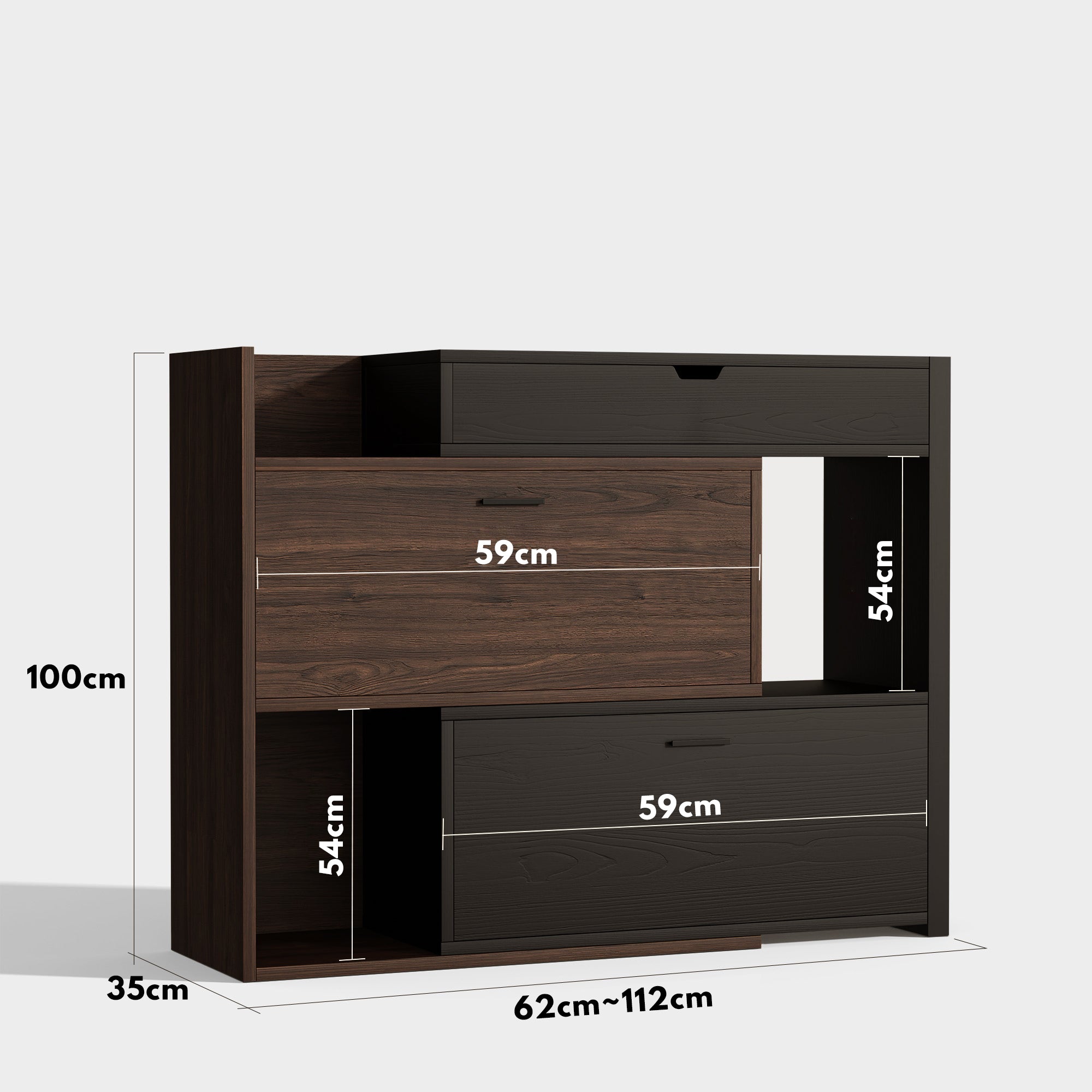 サイズ:幅62~112cm × 奥行き35cm × 高さ100cm