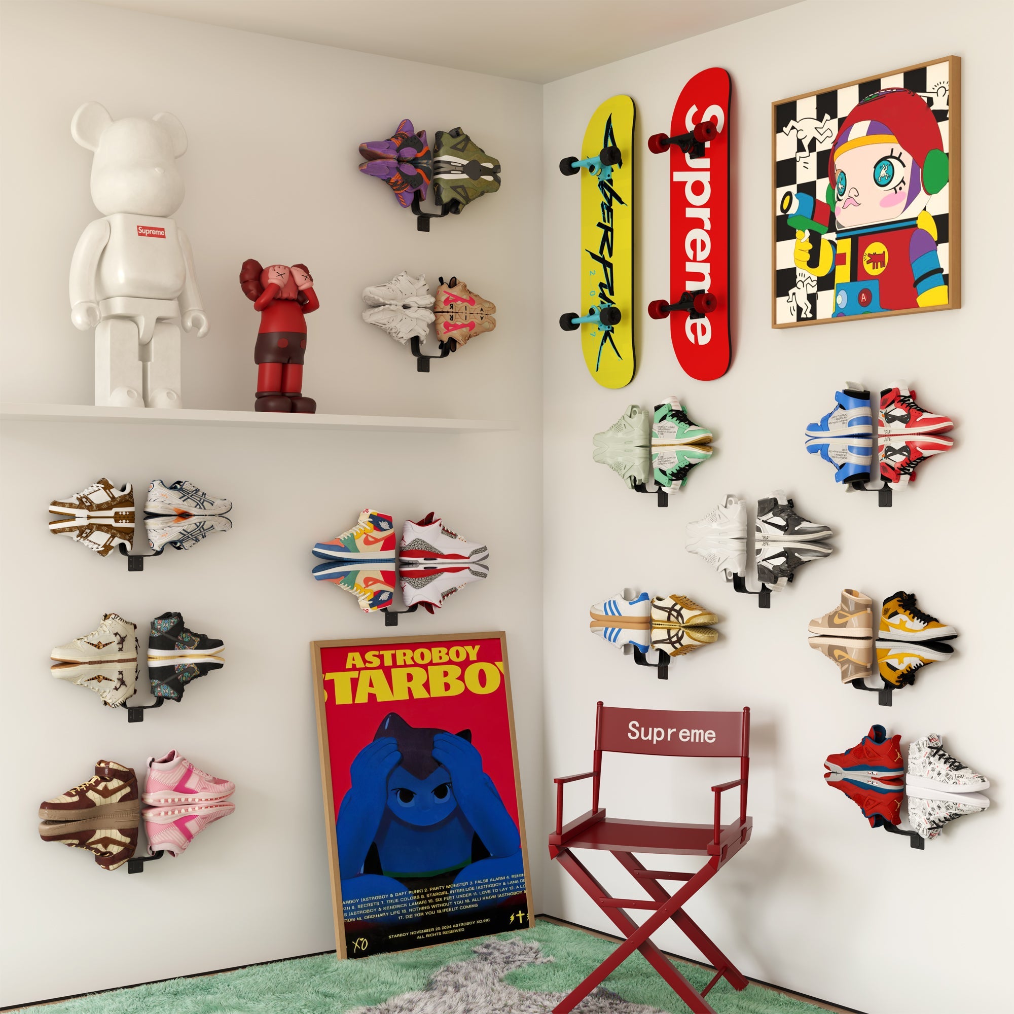 壁掛け式フローティングシューズシェルフで、お気に入りの靴を美しく飾りましょう。壁掛け式のフローティングデザインで、一度に2足の靴をすっきりとディスプレイできるので、リビングルーム、寝室、廊下、ドアの裏など、どんな場所でも活躍します。各セットには棚板が6枚ずつ付いており、最大12足の靴を収納できます。壁面スペースを最大限に活用しながら、靴を整理整頓し、取り出しやすく保ちます。オプションの取り付けボードを追加すれば、壁への穴あけが4つで済み、​​壁の保護にも役立ちます。