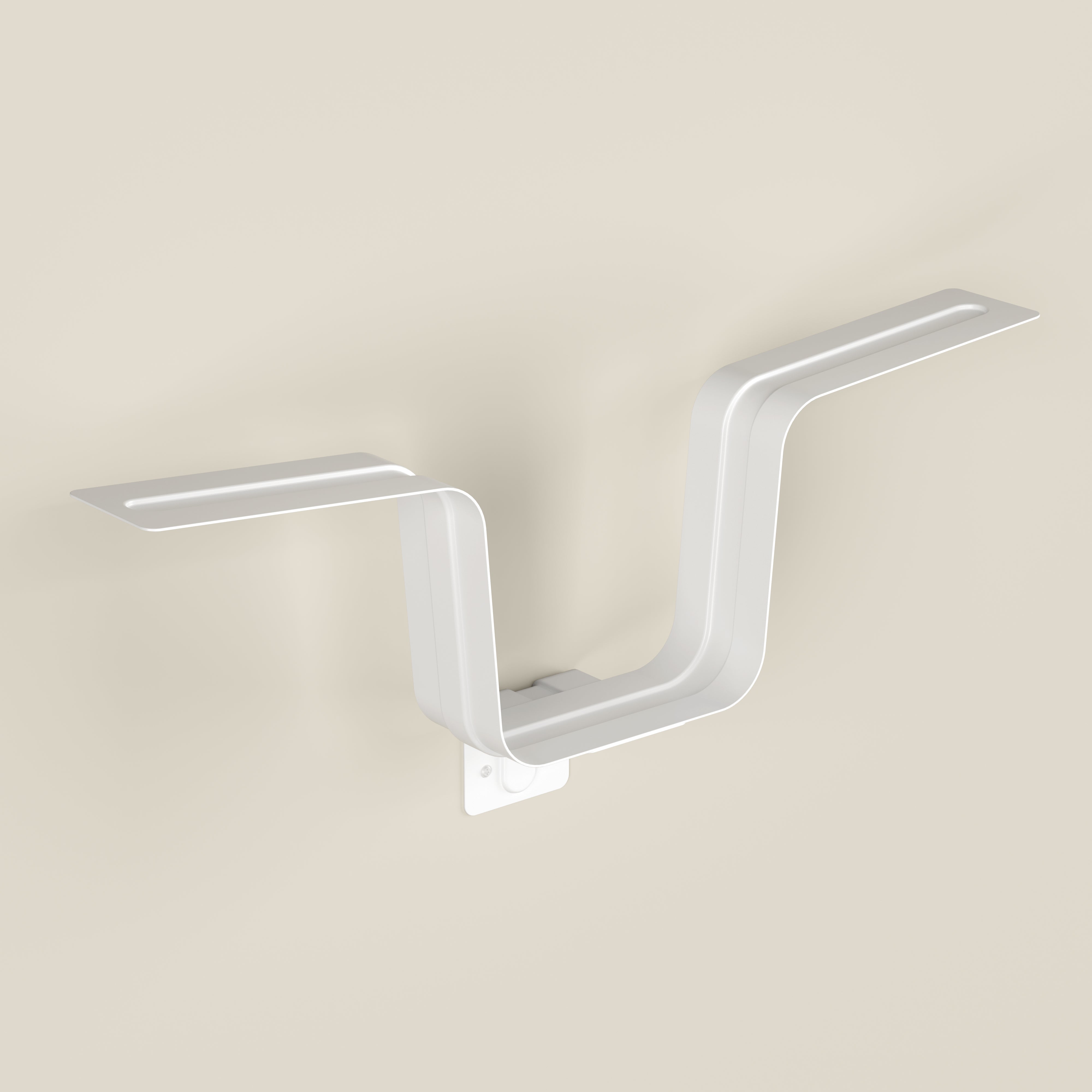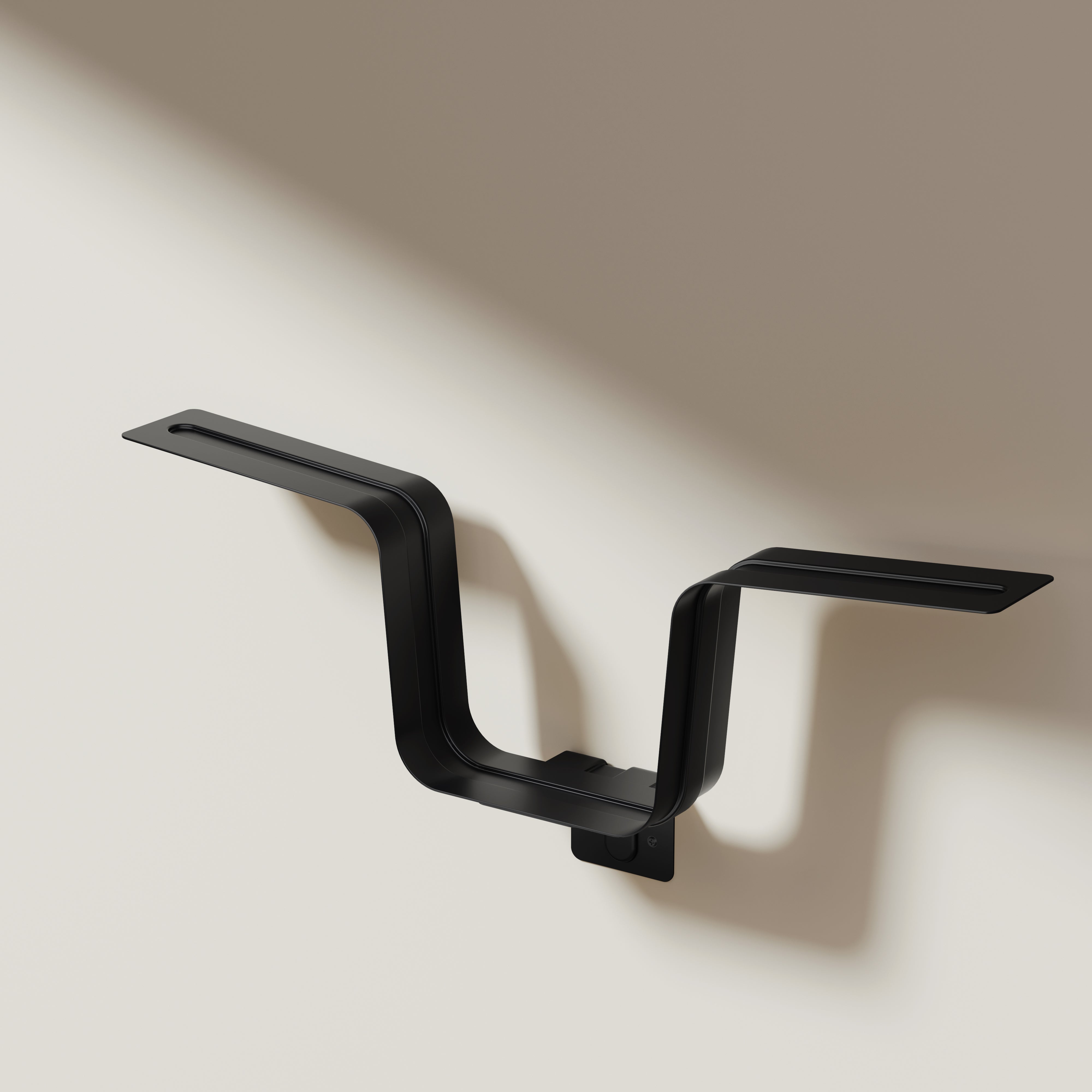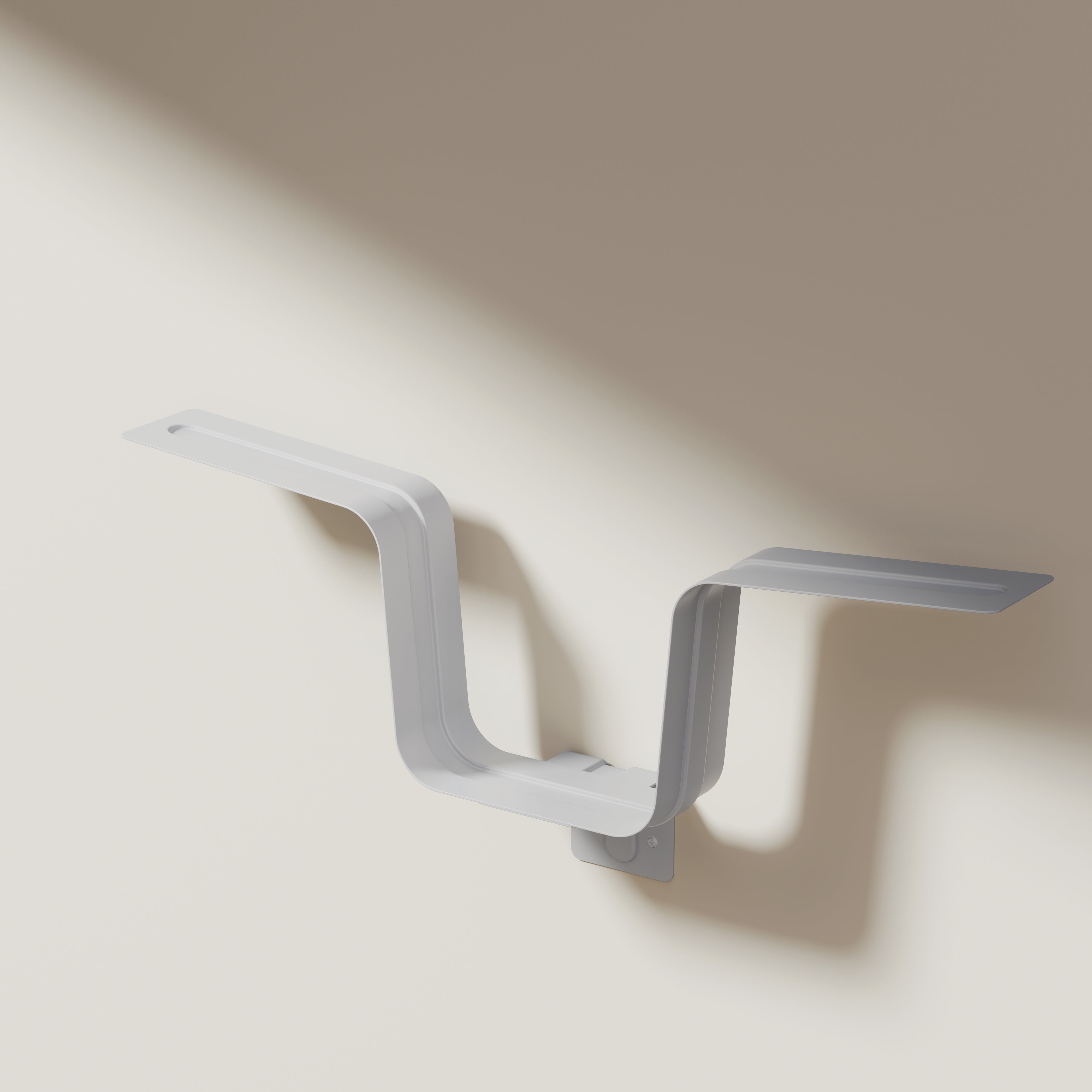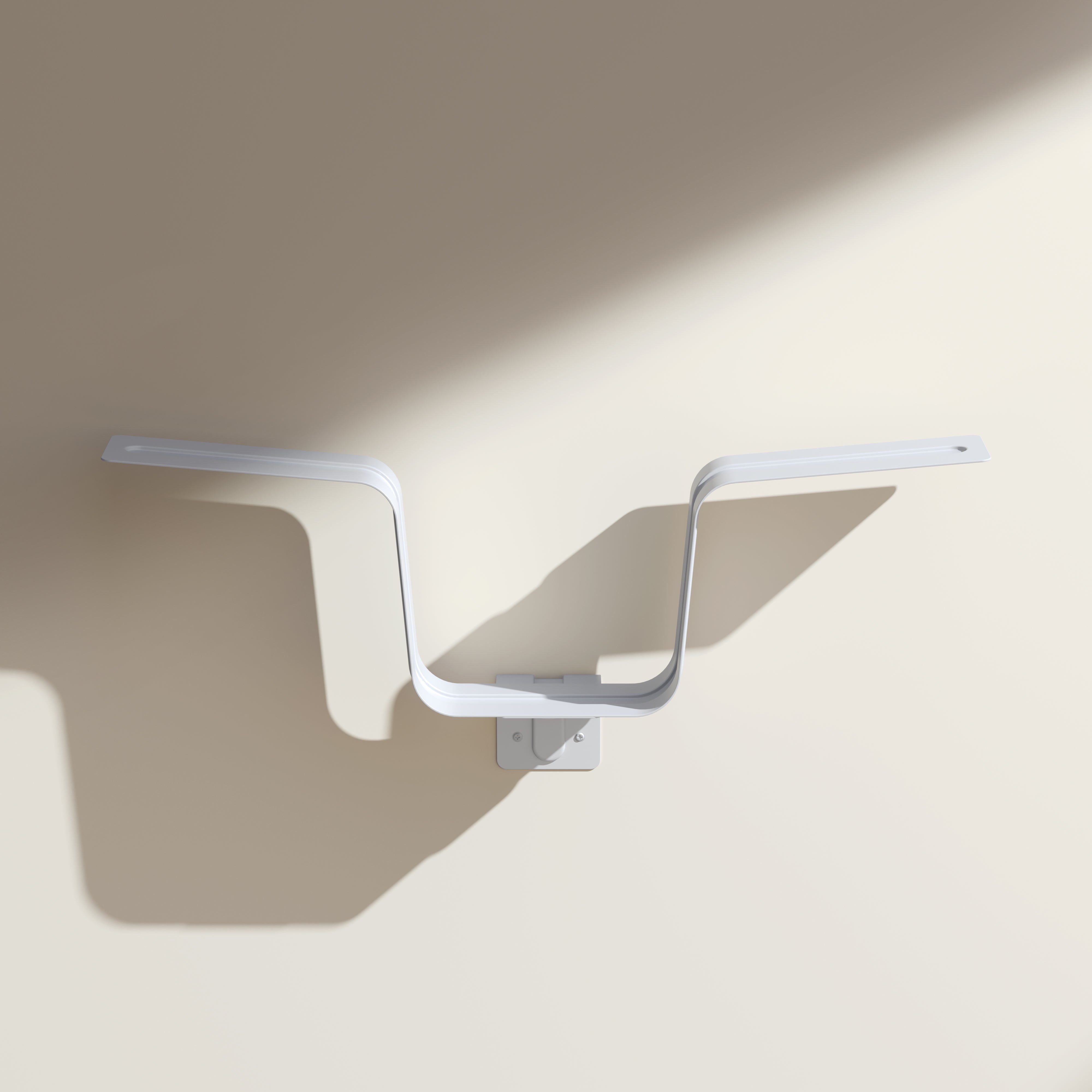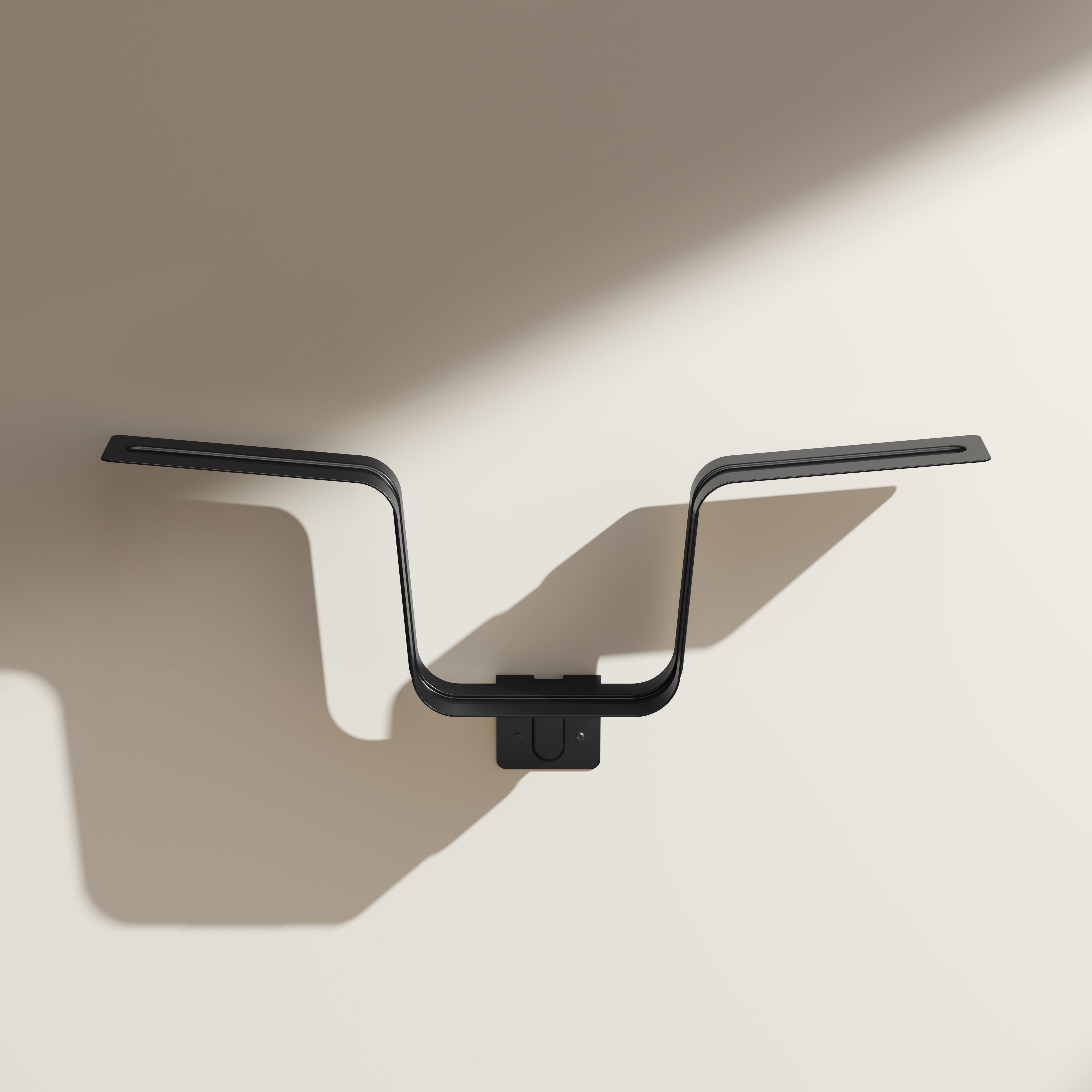 SoleScapeは湖面に映る水面にインスピレーションを得た製品です。金属製のU字型フレームとベースマウントが壁に幻想的な「橋」を架け、現実世界を曖昧にします。省スペースでありながら、ミニマルな幾何学的形状を通して、周囲の景色が水面のように柔らかく歪む、自然の鏡面反射効果に敬意を表しています。