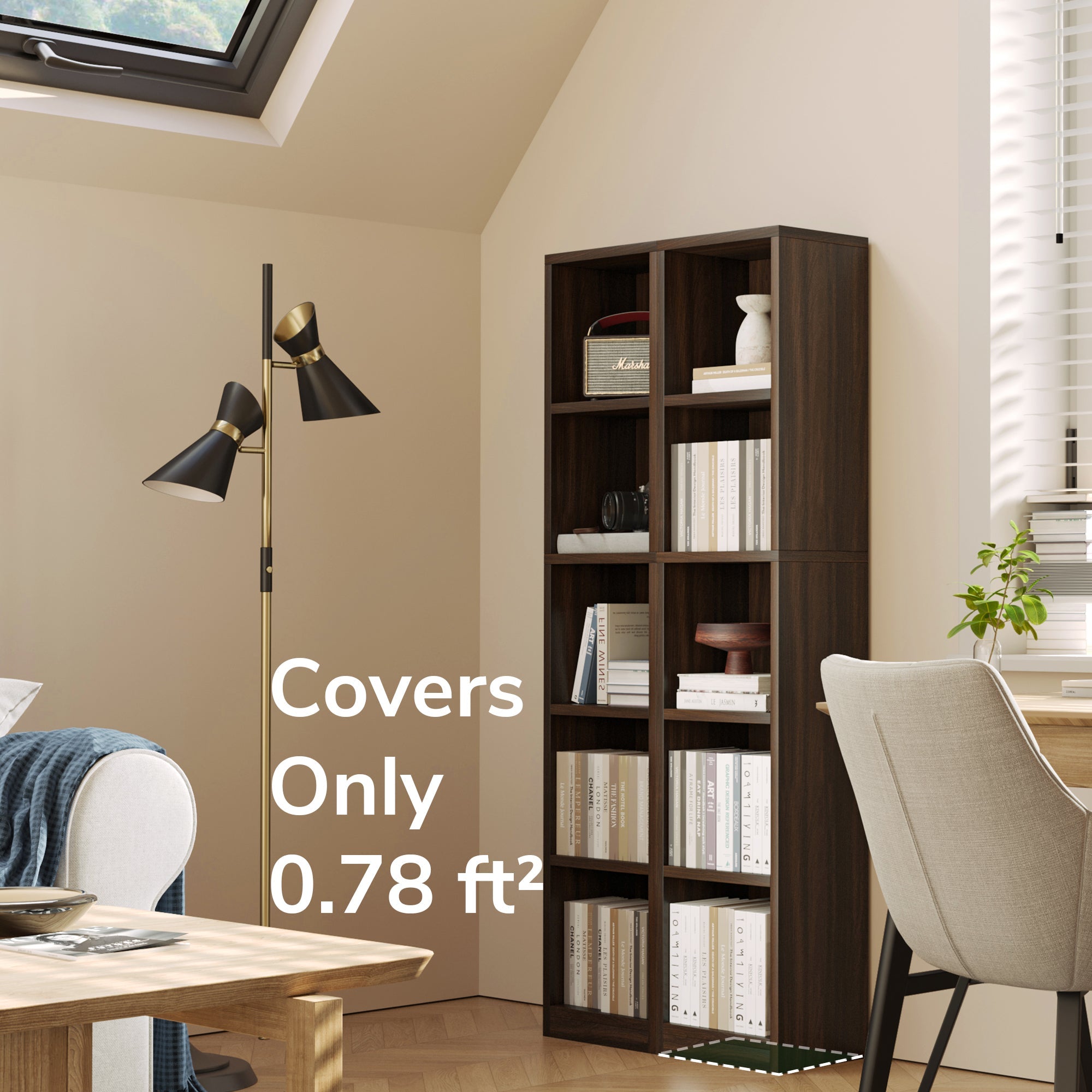 コンパクトなスペース向けに設計された5段ナローブックシェルフは、リビングルーム、寝室、ランドリールームにもシームレスにフィットし、あらゆるコーナーの可能性を最大限に引き出します。多用途に使える収納デザインは、本、インテリア、日用品をすっきりと整理し、整頓されたエレガントな空間を演出します。ミニマルな構造と温かみのある木目調が、機能性と美しさを融合させ、あらゆる空間に洗練された雰囲気を添えます。