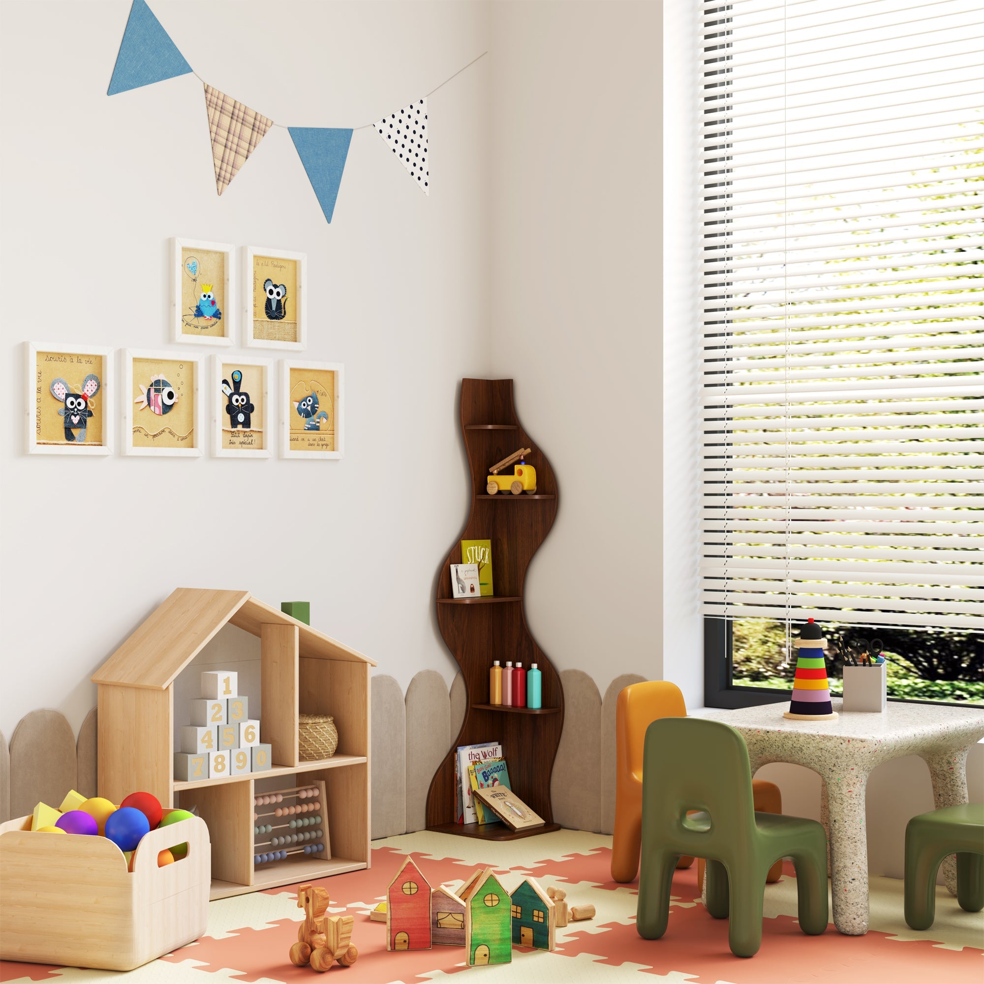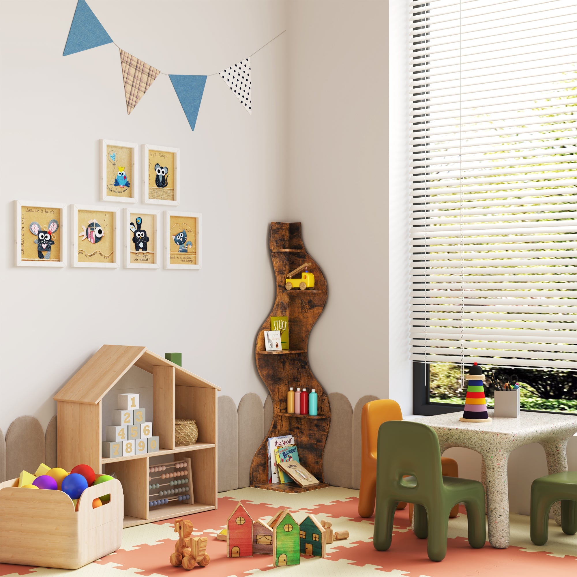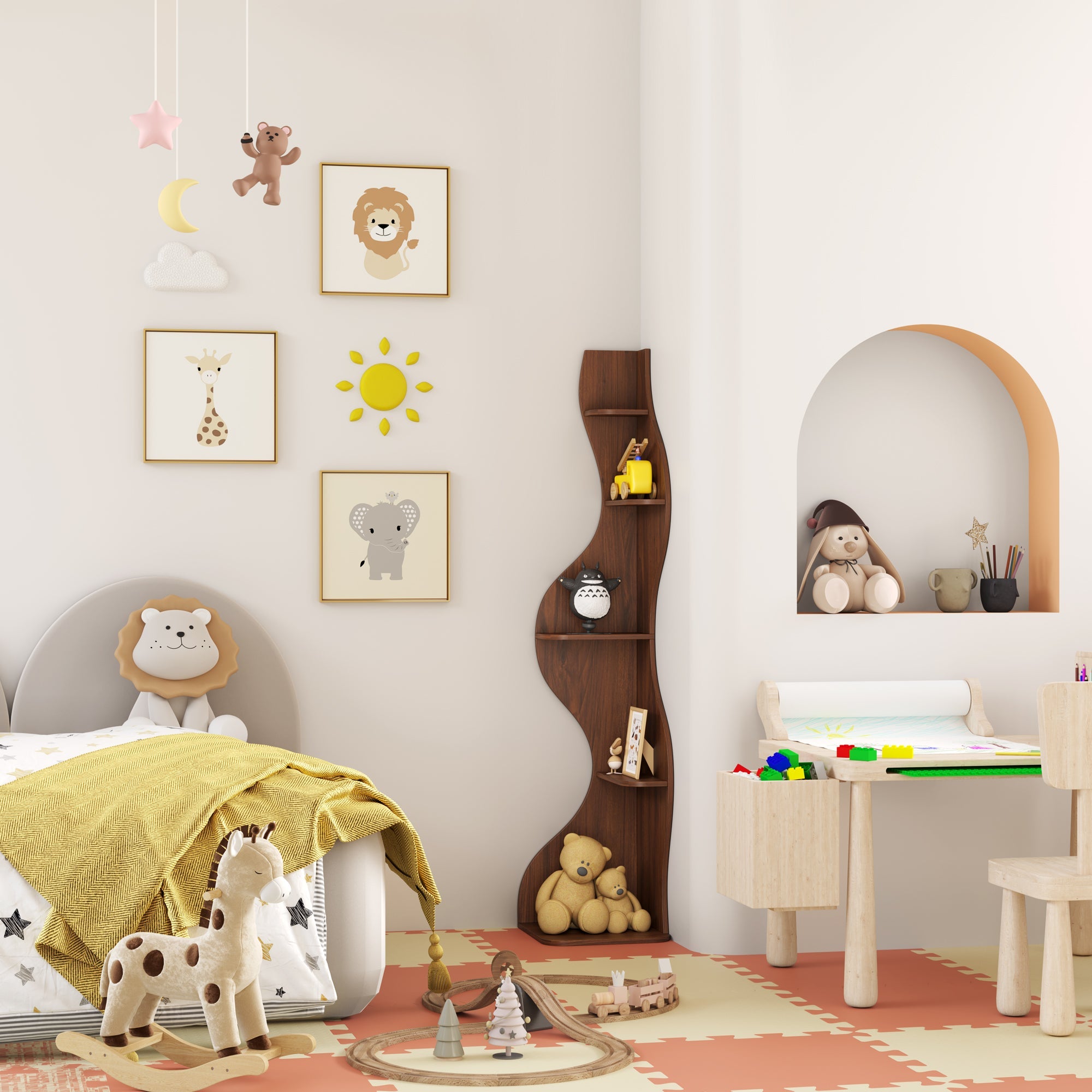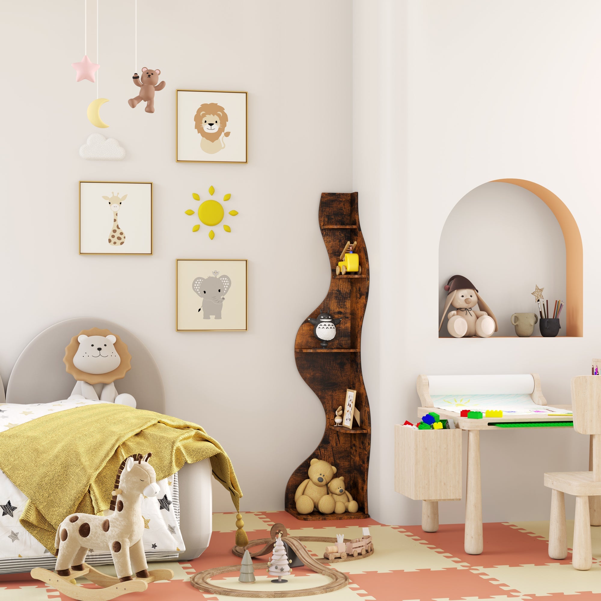 このディスプレイシェルフは、安定性を高める三角形の構造を採用し、コンパクトなデザインでコーナースペースを最大限に活用できます。装飾品、コレクション、お気に入りのアイテムを飾るのに最適で、リビングルーム、寝室など、魅力的なディスプレイが必要なあらゆる空間に機能性とスタイルをプラスします。