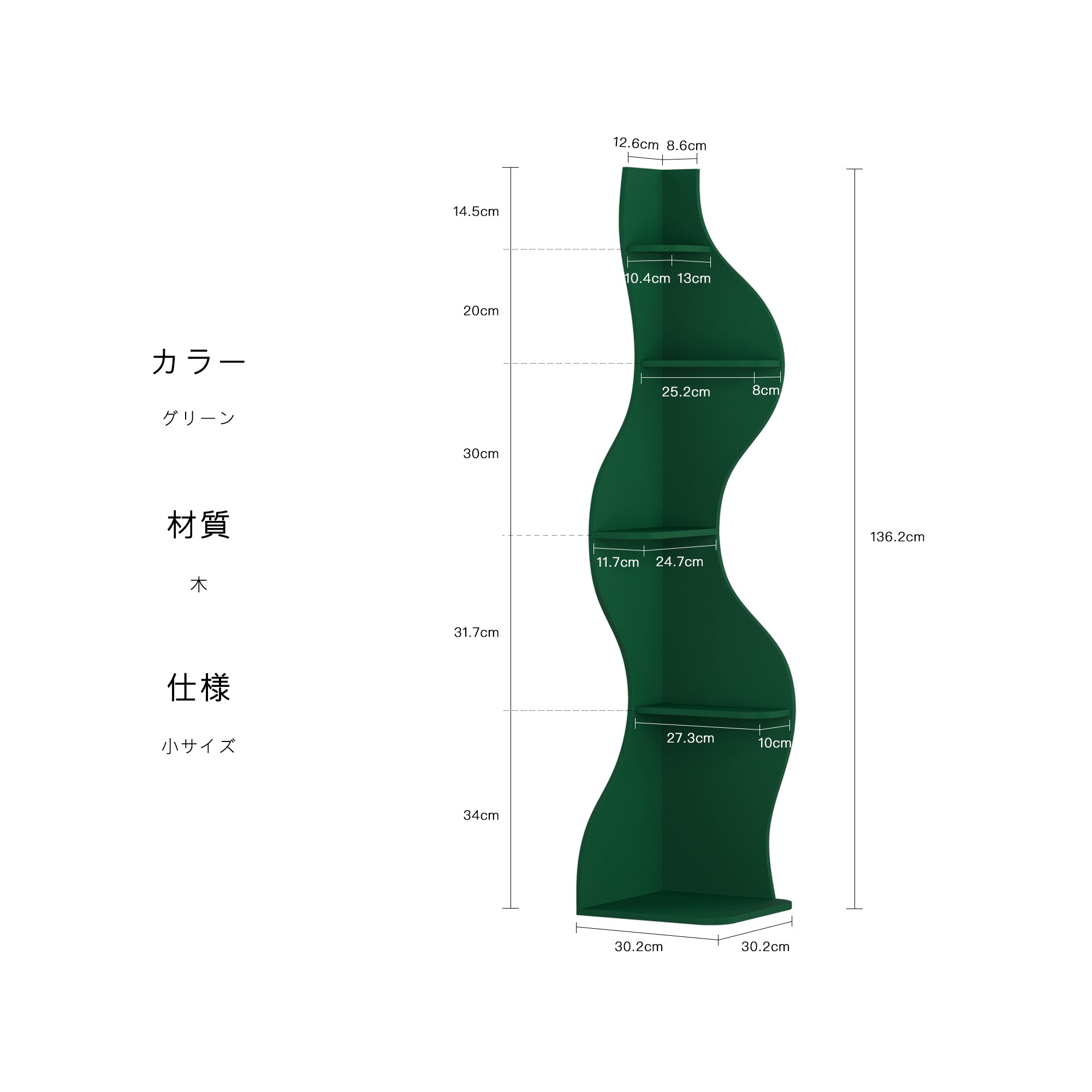 小サイズ:幅30.2cm × 奥行き30.2cm × 高さ136.2cm