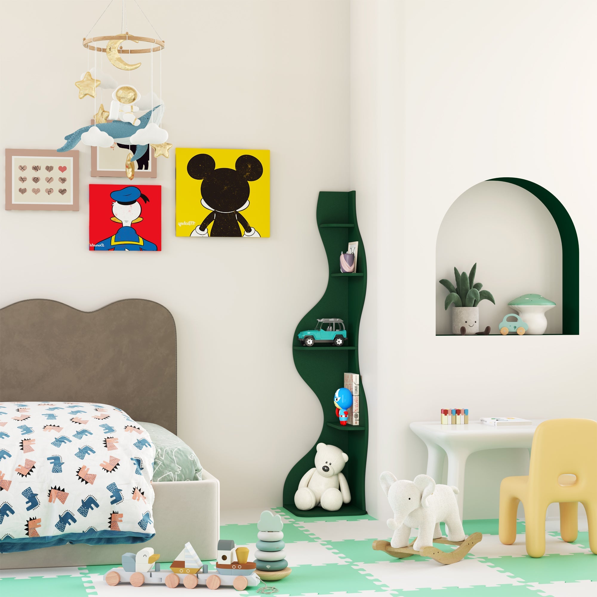 フラメンコダンサーのスカートの渦巻くシルクからインスピレーションを得た、それぞれの曲線がアーチに生命の鼓動を永遠に刻み込む。本はリズミカルな溝に寄り添い、蔓は波のような曲線を優雅に垂れ下がり、収納されたオブジェは建築の舞台に立つダンサーへと変貌する。「あなたの持ち物を空間のリズムに合わせて踊らせましょう。」